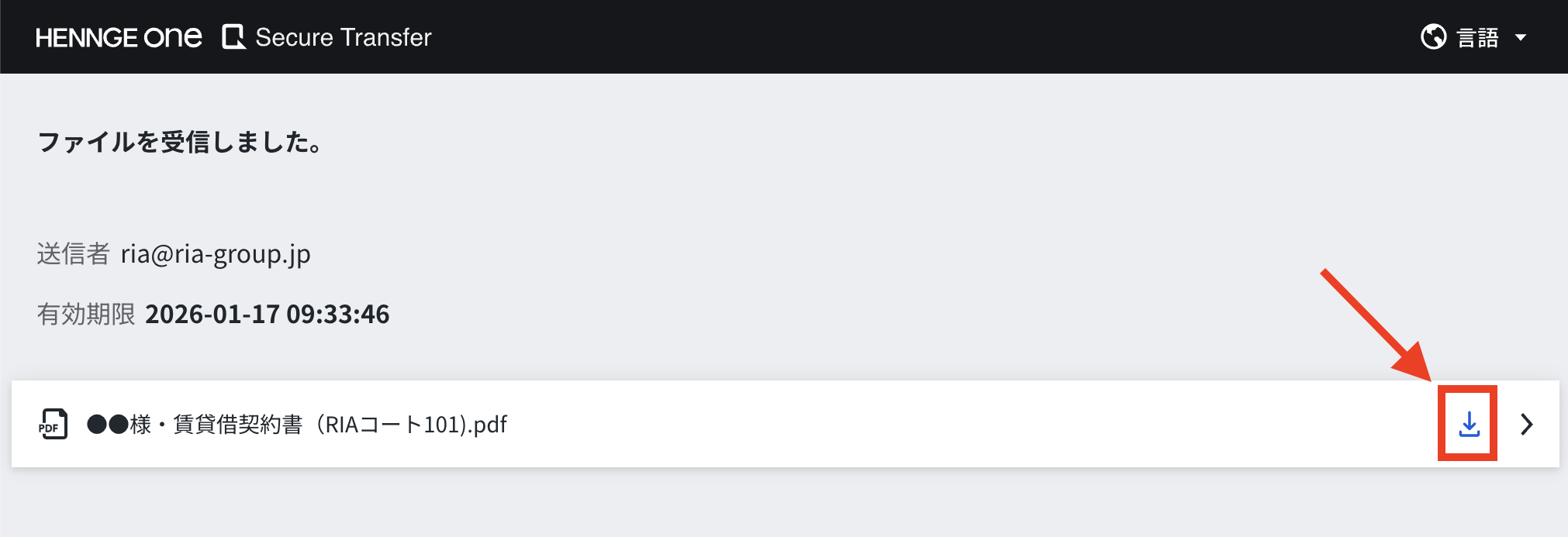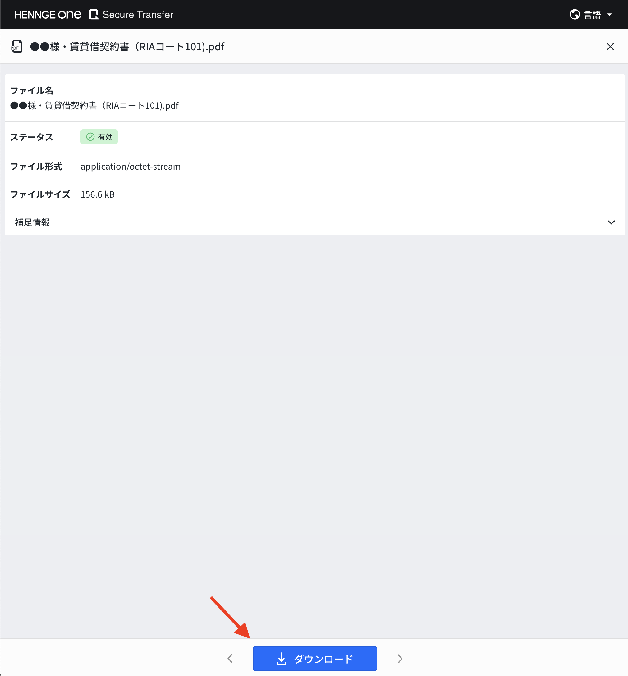 認証後ダウンロード画面が開きますので、表示されているダウンロードアイコンをクリックするか、ファイル詳細画面に表示されるダウンロードボタンをクリックして対象のファイルをダウンロードしてください。